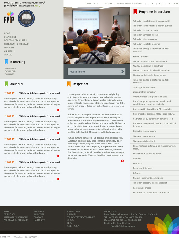Site de prezentare "Fundatia pentru formare profesionala si invatamant preuniversitar", Brasov. Tehnologie: HTML5/CSS3/PHP/MySQL si jQuery.