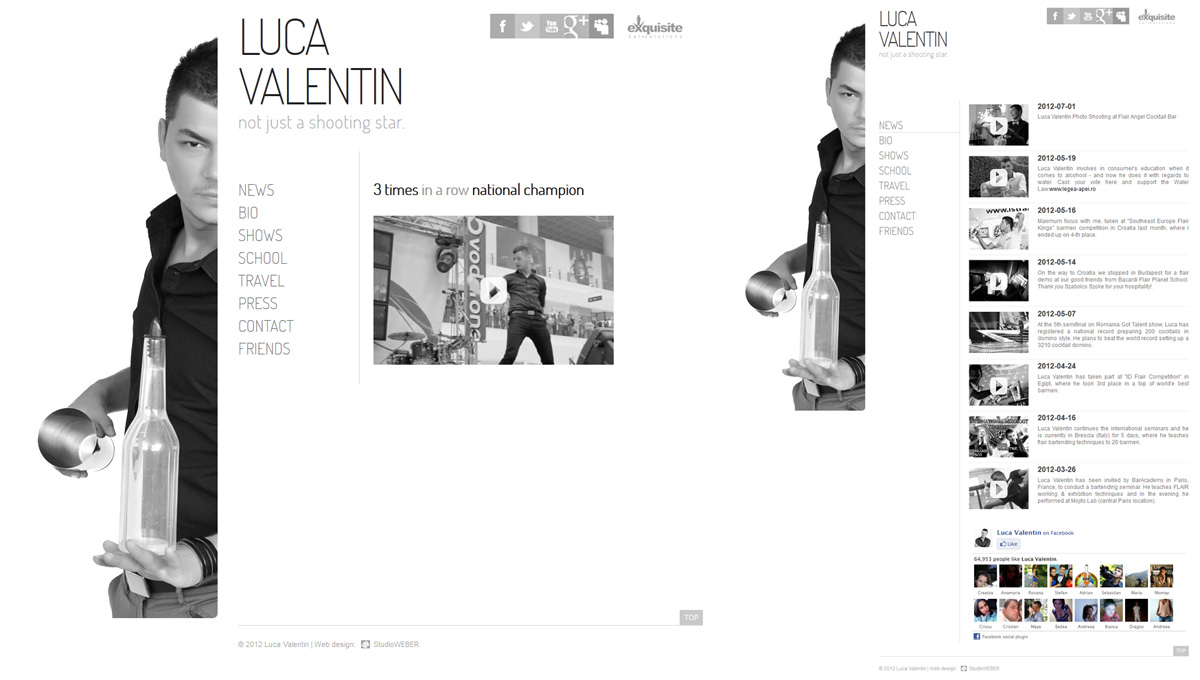 Realizarea site-ului de prezentare al lui Luca Valentin - Flair Bartender. Tehnologie: HTML5/CSS3/PHP/MySQL si jQuery.