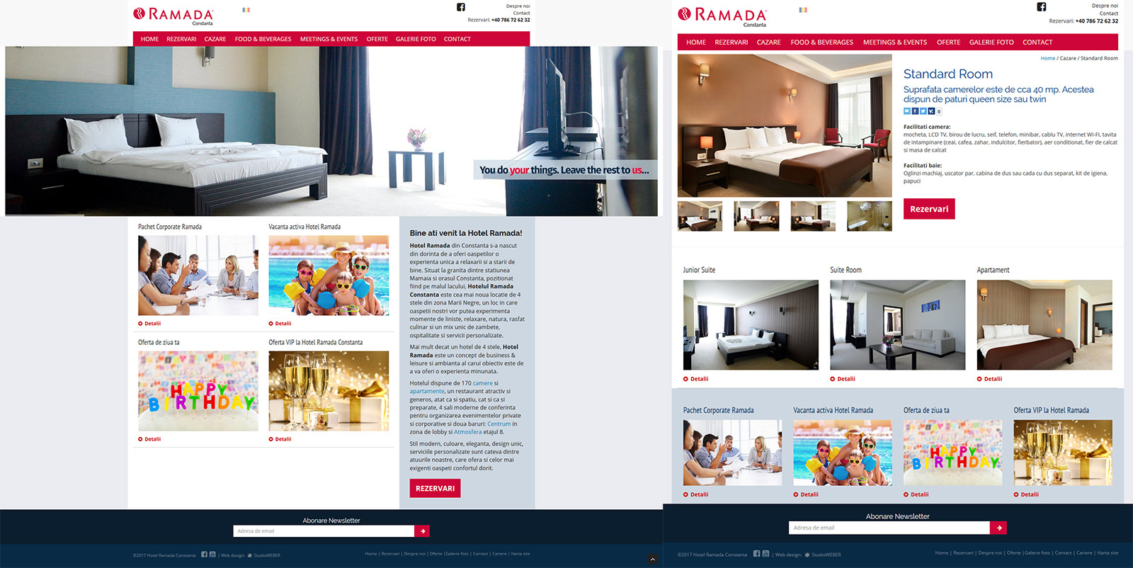 Site de prezentare Hotel Ramada Constanta, custom made CMS cu sistem de rezervare online. Tehnologie: PHP/MySQL si HTML5/CSS3.